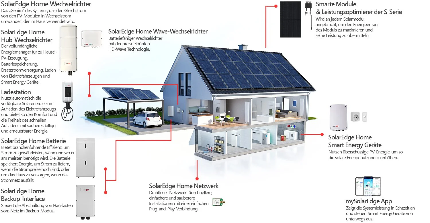 Die innovativen Produkte von SolarEdge machen Photovoltaikanlagen intelligenter, ertragreicher und sicherer. Daher setzen wir seit einigen Jahren primär auf dieses System und haben annähernd 100 Photovoltaikanlagen mit SolarEdge Wechselrichtern und DC-Optimierern in Betrieb. Ertragsoptimierung und Monitoring auf Modulebene, unerreichte Sicherheitsstandards sowie Batteriespeicherlösungen, Smart-Energy Komponenten und E-Auto Ladecontroller – hierfür steht SolarEdge.